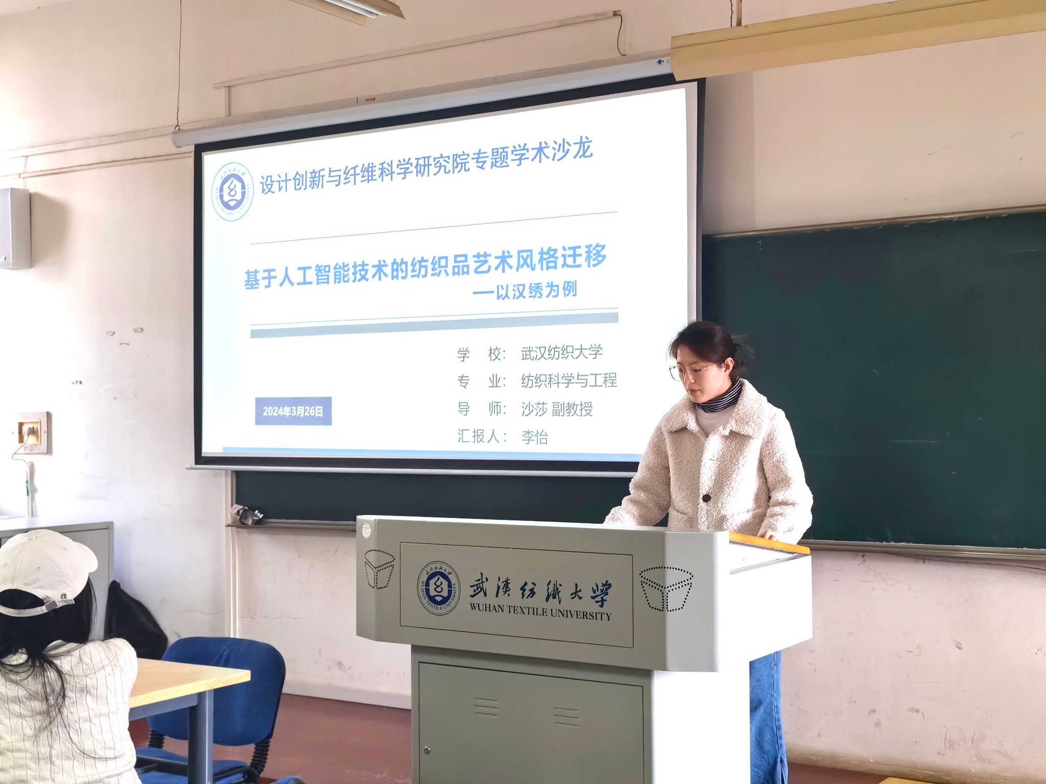 3月26日下午,国产精品久免费的黄网站在综合楼601教室举办了2024年第一期研究生学术论坛。本次论坛由2021级研究生李怡以《基于人工智能技术的纺织品艺术风格迁移——以汉绣为例》为题进行学术成果汇报。
