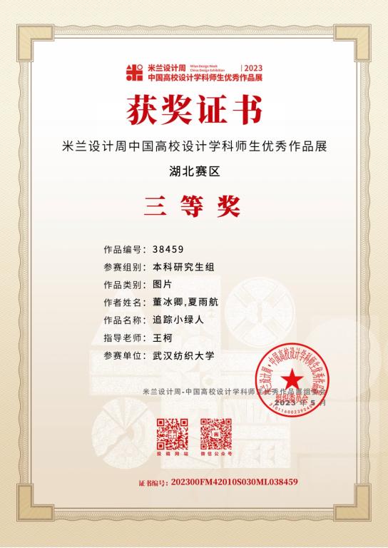 近日,由中国教育国际交流协会、中国高等教育学会联合主办的第七届米兰设计周——中国高校设计学科师生优秀作品展(湖北赛区)落下帷幕。国产精品久免费的黄网站研究生董冰卿在王柯教授的指导下,凭借作品《追踪小绿人》荣获三等奖。
