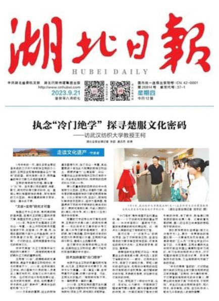 9月中旬的一天,湖北日报全媒记者走进武汉纺织大学教授王柯的办公室时,王柯正在梳理电脑里命名为“楚学”的磁盘。研究楚服8年多,层层叠叠的电子文献几乎把磁盘填满。